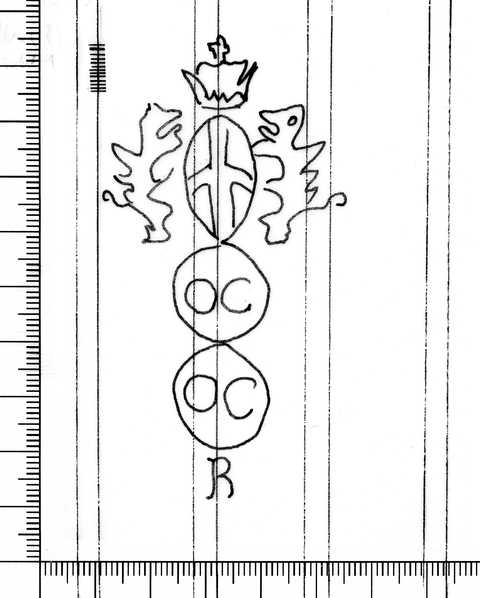 Tipo de filigrana: Sencilla Parte estudiada: Toda la filigrana Código del Motivo: U.02.02.07 Descripción: Dos círculos unidos. Sobre el primero, el escudo de Génova y en el interior, las letras CC. En el segundo, las letras CC y debajo, la letra R. Estructura: Tradicional de líneas Altura (mm): 85 Anchura (mm): 45 Tipo de papel: Verjurado Posición en la hoja: Medio centro Nº de corondeles en la hoja: 9 Distancia entre corondeles: Media entre 15 y 17 Situada entre el corondel 3 y el corondel 6 Posición en relación al texto: Perpendicular al texto hacia abajo Origen de los datos: Datos obtenidos del original Información adicional: A la izquierda de la filigrana tiene tres corondeles dobles y la mitad de otro. País de localizatión del molino: Italia Estado de la hoja: Bordes sin determinar Altura de la hoja: 299 Anchura de la hoja: 205 Color de la hoja: Natural Estado de conservación: Bueno Institución: Archivo Municipal de Oviedo.