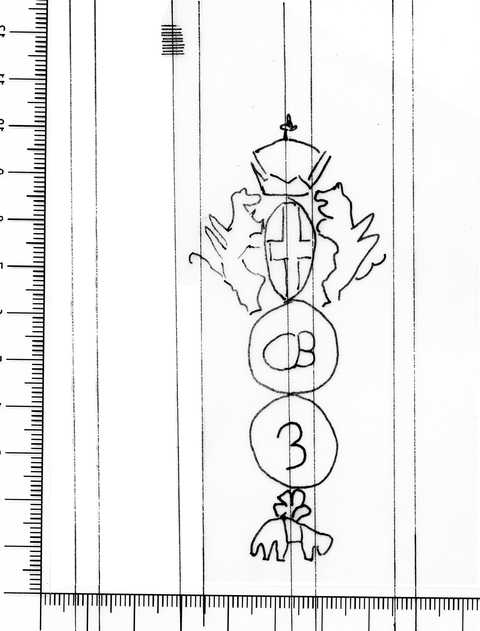 Tipo de filigrana: Sencilla Parte estudiada: Toda la filigrana Código del Motivo: U.02.02.07 Descripción: Dos círculos unidos. Sobre el primero, el escudo de Génova y en el interior, las letras CB. En el segundo, el número 3 y debajo, el toisón. Estructura: Tradicional de líneas Altura (mm): 96 Anchura (mm): 70 Tipo de papel: Verjurado Posición en la hoja: Medio centro Nº de corondeles en la hoja: 9 Distancia entre corondeles: Media entre 16 y 19 Situada entre el corondel 4 y el corondel 7 Posición en relación al texto: Perpendicular al texto hacia abajo Origen de los datos: Datos obtenidos del original Información adicional: A la izquierda de la filigrana tiene cuatro corondeles dobles y la mitad de otro. País de localizatión del molino: Italia Estado de la hoja: Bordes sin determinar Altura de la hoja: 299 Anchura de la hoja: 204 Color de la hoja: Natural Estado de conservación: Bueno Institución: Archivo Municipal de Oviedo.