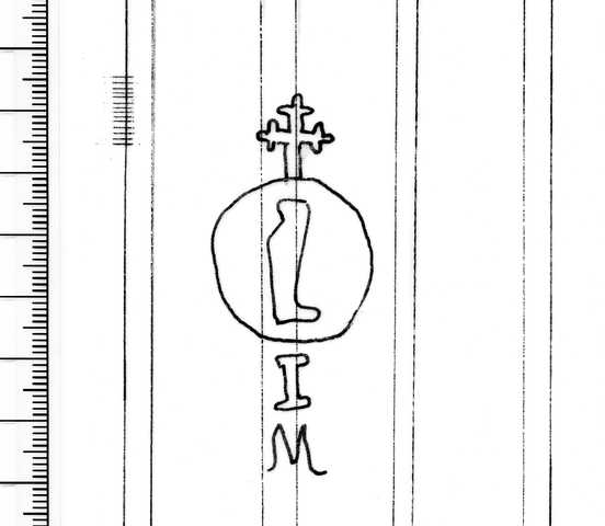 Tipo de filigrana: Sencilla Parte estudiada: Toda la filigrana Código del Motivo: Q.02.01.02 Descripción: Bota dentro de un círculo. Encima, una cruz trebolada. Debajo, I / M. Estructura: Tradicional de líneas Altura (mm): 63 Anchura (mm): 26 Tipo de papel: Verjurado Posición en la hoja: Medio centro Nº de corondeles en la hoja: 9 Distancia entre corondeles: Media entre 15 y 18 Situada entre el corondel 4 y el corondel 6 Posición en relación al texto: Perpendicular al texto hacia arriba Origen de los datos: Datos obtenidos del original País de localizatión del molino: Italia Estado de la hoja: Bordes sin determinar Altura de la hoja: 305 Anchura de la hoja: 211 Color de la hoja: Natural Estado de conservación: Bueno Institución: Archivo Municipal de Oviedo.