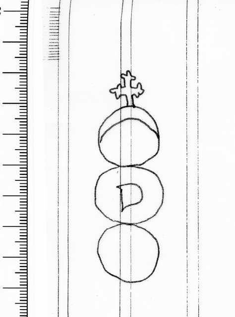Tipo de filigrana: Sencilla Parte estudiada: Toda la filigrana Código del Motivo: U.03.03.11 Descripción: Tres círculos unidos. Sobre el primero, una cruz trebolada y en el interior una medialuna. En el segundo, la letra D. Estructura: Tradicional de líneas Altura (mm): 70 Anchura (mm): 23 Tipo de papel: Verjurado Posición en la hoja: Medio centro Nº de corondeles en la hoja: 10 Distancia entre corondeles: Media entre 11 y 13 Situada entre el corondel 4 y el corondel 6 Posición en relación al texto: Perpendicular al texto hacia arriba Origen de los datos: Datos obtenidos del original País de localizatión del molino: Italia Estado de la hoja: Bordes sin determinar Altura de la hoja: 301 Anchura de la hoja: 211 Color de la hoja: Natural Estado de conservación: Bueno Institución: Archivo Municipal de Oviedo.