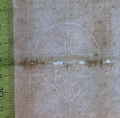 Tipo de filigrana: Sencilla Parte estudiada: Toda la filigrana Código del Motivo: S.01.03.02 Descripción: Círculo ovalado: cruz latina y letras BT. Estructura: Tradicional de líneas Altura (mm): 49 Anchura (mm): 40 Tipo de papel: Verjurado Posición en la hoja: Izquierda superior Nº de corondeles en la hoja: 8 Distancia entre corondeles: Situada entre el corondel 3 y el corondel 5 Posición en relación al texto: Origen de los datos: Estado de la hoja: Cortados todos los bordes Altura de la hoja: 315 Anchura de la hoja: 209 Color de la hoja: Natural Institución: Biblioteca de la Universidad Pontifícia de Salamanca -UPSA-