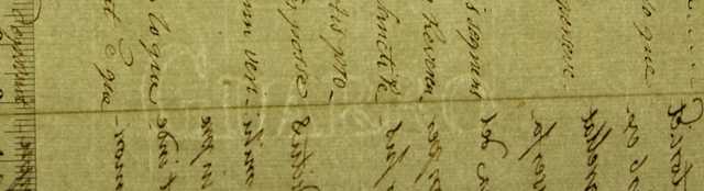 Tipo de filigrana: Sencilla Parte estudiada: Izquierda Código del Motivo: W.02.01.00 Descripción: Apellido: GUARRO Estructura: Tradicional de líneas Altura (mm): 16 Anchura (mm): 60 Tipo de papel: Verjurado Posición en la hoja: Filigrana doble Nº de corondeles en la hoja: 11 Distancia entre corondeles: Situada entre el corondel 5 y el corondel 8 Posición en relación al texto: Origen de los datos: Lugar del molino: Capellades, Cataluña Fabricante: Guarro Estado de la hoja: Cortado borde derecho Altura de la hoja: 310 Anchura de la hoja: 212 Color de la hoja: Natural Institución: Archivo Ducal de Medinaceli -ADM-