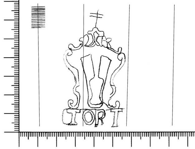 Tipo de filigrana: Sencilla Parte estudiada: Toda la filigrana Código del Motivo: T.02.10.02 Descripción: Escudo. Tijeras de turdidor en el interior. A los pies una cartela con las letras TORT. Estructura: Tradicional de líneas Altura (mm): 63 Anchura (mm): 34 Tipo de papel: Verjurado Posición en la hoja: Medio centro Nº de corondeles en la hoja: 8 Distancia entre corondeles: Situada entre el corondel 3 y el corondel 5 Posición en relación al texto: Paralelo al texto en sentido contrario Origen de los datos: Datos obtenidos del original Tipo de uso: Papel para escribir Estado de la hoja: Cortados todos los bordes Altura de la hoja: 185 Anchura de la hoja: 279 Color de la hoja: Natural Institución: Biblioteca Pública Lambert Mata de Ripoll