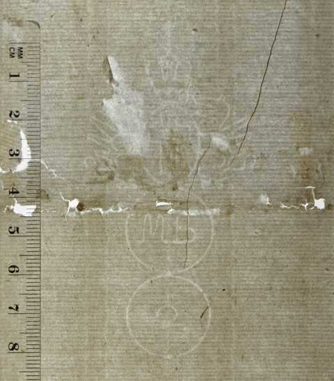 Tipo de filigrana: Sencilla Parte estudiada: Toda la filigrana Código del Motivo: U.02.02.07 Descripción: Dos círculos con el escudo de Génova sobre el primero. En el interior de prier cículo las letras: MB y en el del segundo círculo el número: 2 Estructura: Tradicional de líneas Altura (mm): 81 Anchura (mm): 45 Tipo de papel: Verjurado Posición en la hoja: Medio centro Nº de corondeles en la hoja: 10 Distancia entre corondeles: Situada entre el corondel 3 y el corondel 6 Posición en relación al texto: Origen de los datos: Estado de la hoja: Cortados todos los bordes Altura de la hoja: 316 Anchura de la hoja: 220 Color de la hoja: Natural Institución: Biblioteca Pública Episcopal de Barcelona -BPEB-
