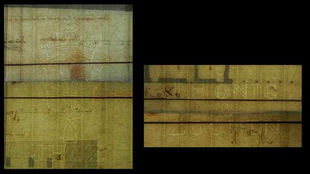 Tipo de filigrana: Sencilla Parte estudiada: Derecha Código del Motivo: W.04.02.00 Descripción: Filigrana doble. Filigrana izquierda: Escudo con corona. En el interior flor de lis. Debajo colmena e iniciales: JH&Z. Filigrana derecha: Letras: J. HONIG/ZOONEN Estructura: Tradicional de líneas Altura (mm): 69 Anchura (mm): 135 Tipo de papel: Verjurado Posición en la hoja: Derecha centro Nº de corondeles en la hoja: 13 Distancia entre corondeles: Situada entre el corondel 4 y el corondel 9 Posición en relación al texto: Origen de los datos: Lugar del molino: [Zaandijk]ciudad en el municipio de Zaanstad , provincia de Holanda Septentrional , Países Bajos Fabricante: J H & Z [Jacob Honig e hijo] Estado de la hoja: Cortado borde derecho y superior Altura de la hoja: 538 Anchura de la hoja: [375] Color de la hoja: Natural Institución: Archivo Ducal de Medinaceli -ADM-