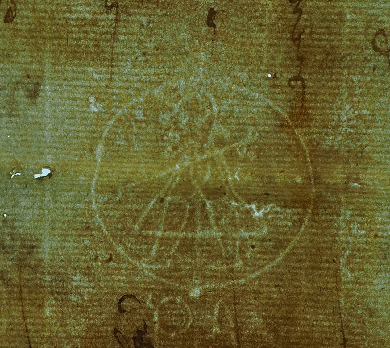 Tipo de filigrana: Sencilla Parte estudiada: Toda la filigrana Código del Motivo: A.01.05.02 Descripción: Peregrino dentro de un círculo.. En la base letras PA Estructura: Tradicional de líneas Altura (mm): 50 Anchura (mm): 36 Tipo de papel: Verjurado Posición en la hoja: Nº de corondeles en la hoja: 8 Distancia entre corondeles: Situada entre el corondel 3 y el corondel 5 Posición en relación al texto: Origen de los datos: Datos obtenidos del original Autor de los datos de este registro: María Dolores Díaz de Miranda Macías Estado de la hoja: Cortados todos los bordes Altura de la hoja: 310 Anchura de la hoja: 220 Color de la hoja: Natural Institución: Archivo Ducal de Medinaceli -ADM-Toledo