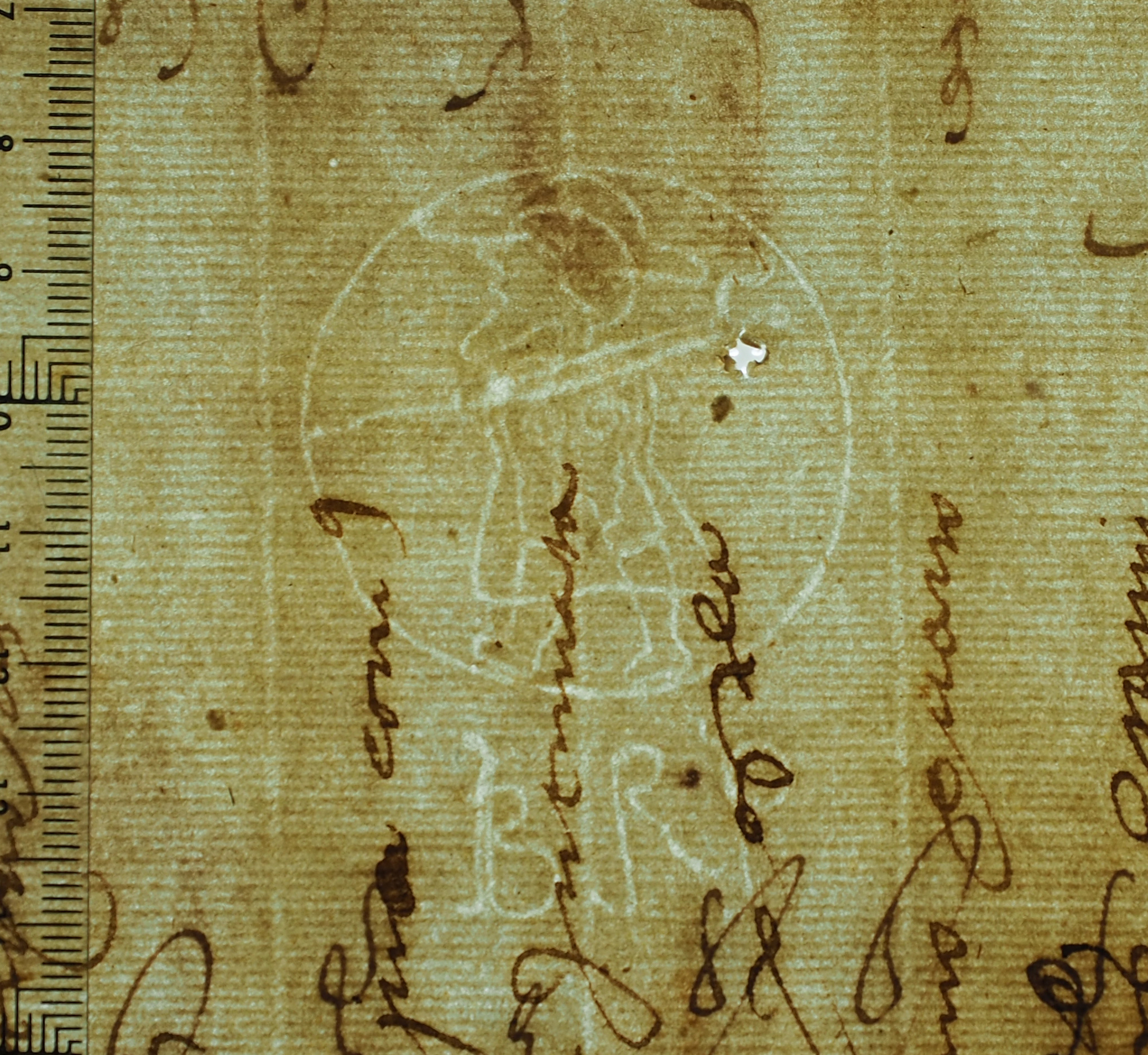Tipo de filigrana: Sencilla Parte estudiada: Toda la filigrana Código del Motivo: A.01.05.02 Descripción: Peregrino dentro de un círculo. En la base las letras BRP Estructura: Tradicional de líneas Altura (mm): 58 Anchura (mm): 42 Tipo de papel: Verjurado Posición en la hoja: Nº de corondeles en la hoja: 8 Distancia entre corondeles: Situada entre el corondel 3 y el corondel 5 Posición en relación al texto: Origen de los datos: Datos obtenidos del original Autor de los datos de este registro: María Dolores Díaz de Miranda Macías Estado de la hoja: Cortados todos los bordes Altura de la hoja: 315 Anchura de la hoja: 220 Color de la hoja: Natural Estado de conservación: Malo Institución: Archivo Ducal de Medinaceli -ADM-Toledo