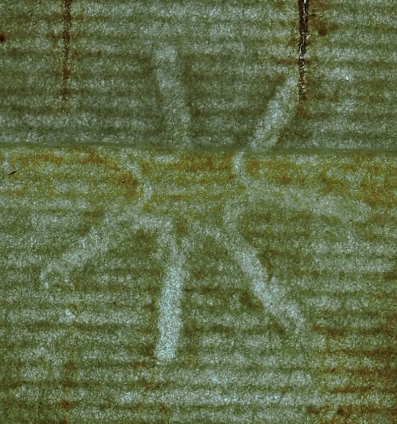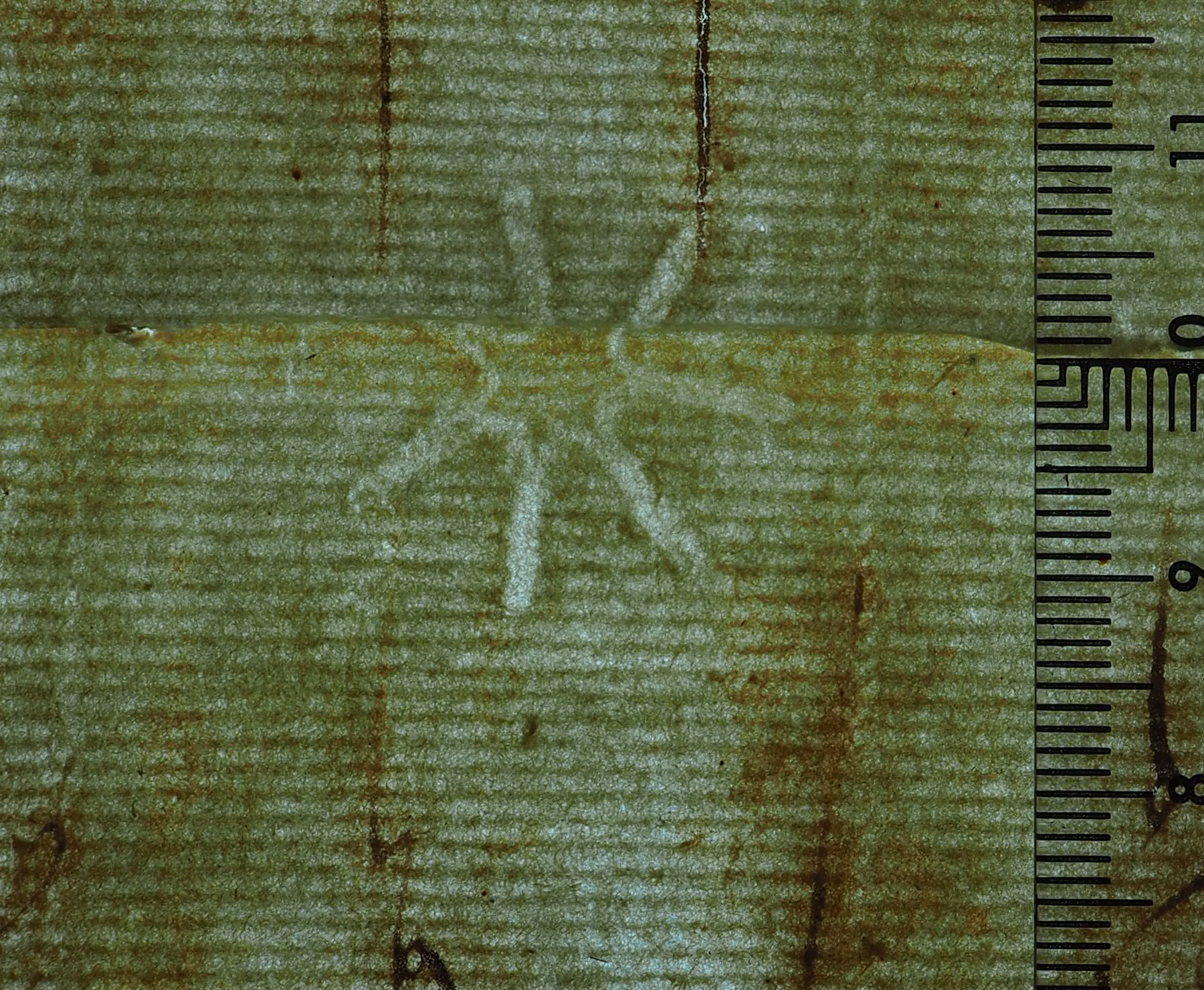 Tipo de filigrana: Sencilla Parte estudiada: Toda la filigrana Código del Motivo: J.03.01.01 Descripción: Esrella de siete puntas Estructura: Tradicional de líneas Altura (mm): 23 Anchura (mm): 19 Tipo de papel: Verjurado Posición en la hoja: Indeterminada Nº de corondeles en la hoja: 6 Distancia entre corondeles: Situada entre el corondel 4 y el corondel 5 Posición en relación al texto: Origen de los datos: Datos obtenidos del original Estado de la hoja: Cortado borde izquierdo Altura de la hoja: 313 Anchura de la hoja: 219 Color de la hoja: Natural Estado de conservación: Malo Institución: Archivo Ducal de Medinaceli -ADM-Toledo