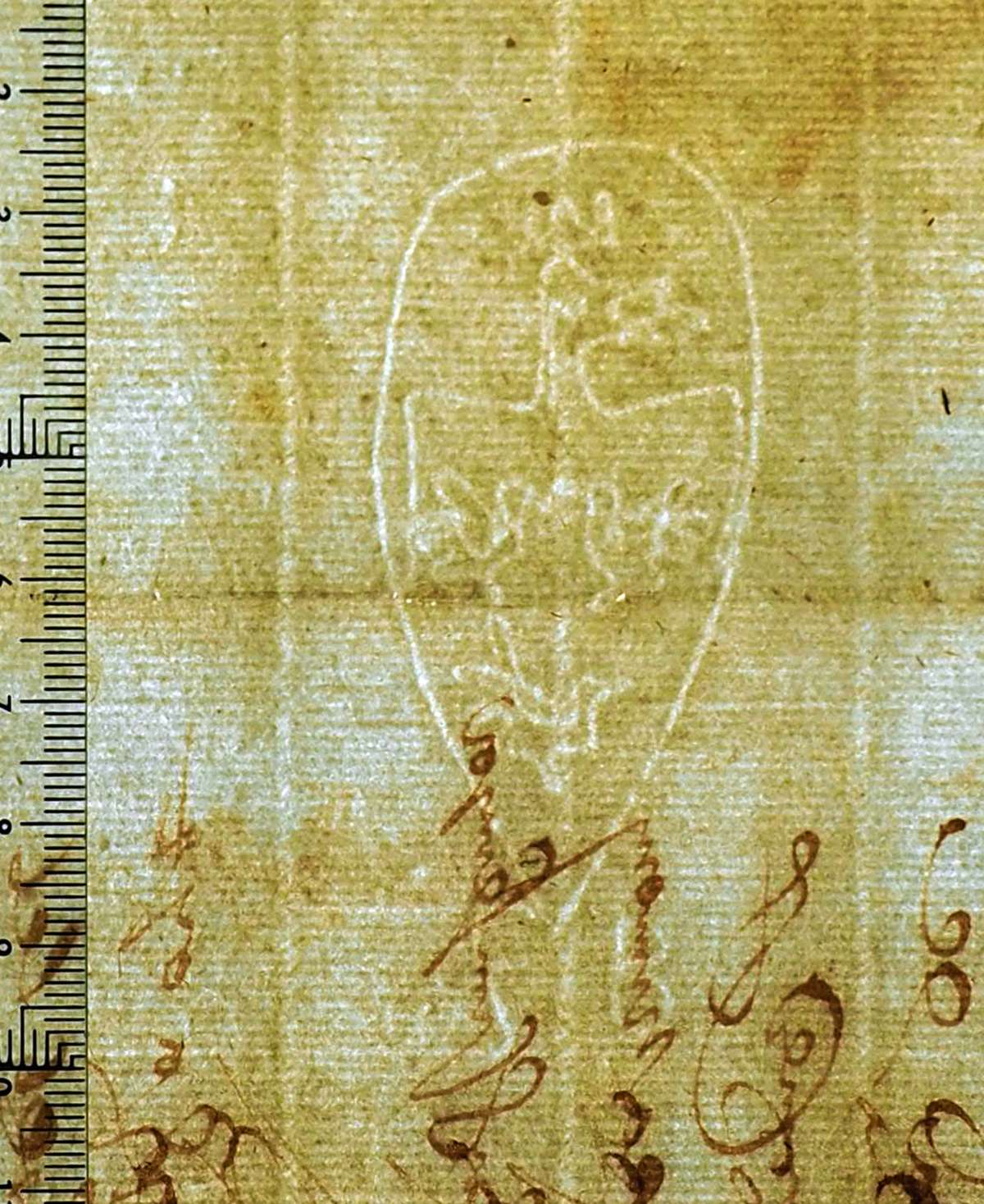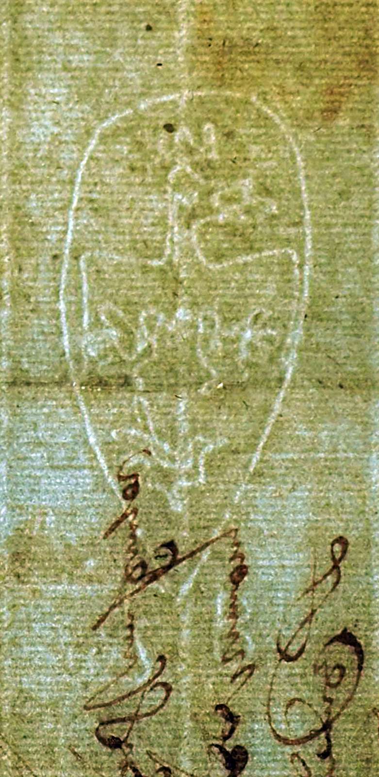 Tipo de filigrana: Sencilla Parte estudiada: Toda la filigrana Código del Motivo: D.01.04.00 Descripción: Águila con corona dentro de un gran óvalo, en el interior tres aves: Fuera y debajo las letras: FB Estructura: Tradicional de líneas Altura (mm): 75 Anchura (mm): 32 Tipo de papel: Verjurado Posición en la hoja: Izquierda centro Nº de corondeles en la hoja: 15 Distancia entre corondeles: Situada entre el corondel 4 y el corondel 6 Posición en relación al texto: Perpendicular al texto hacia arriba Origen de los datos: Autor de los datos de este registro: María Dolores Díaz de Miranda Macías Estado de la hoja: Sin cortar bordes Altura de la hoja: 315 Anchura de la hoja: 435 Color de la hoja: Natural Estado de conservación: Bueno Institución: Archivo Ducal de Medinaceli -ADM-Toledo