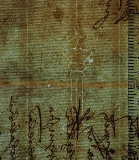 Tipo de filigrana: Sencilla Parte estudiada: Toda la filigrana Código del Motivo: K.03.01.02 Descripción: Columna con una cruz encima Estructura: Tradicional de líneas Altura (mm): 74 Anchura (mm): 20 Tipo de papel: Verjurado Posición en la hoja: Izquierda centro Nº de corondeles en la hoja: 7 Distancia entre corondeles: Situada entre el corondel 4 y el corondel 6 Posición en relación al texto: Origen de los datos: Datos obtenidos del original Información adicional: Interesante las puntadas en los corondeles Estado de la hoja: Cortado borde derecho Altura de la hoja: 311 Anchura de la hoja: 205 Color de la hoja: Natural Estado de conservación: Regular Institución: Archivo Ducal de Medinaceli -ADM-Toledo