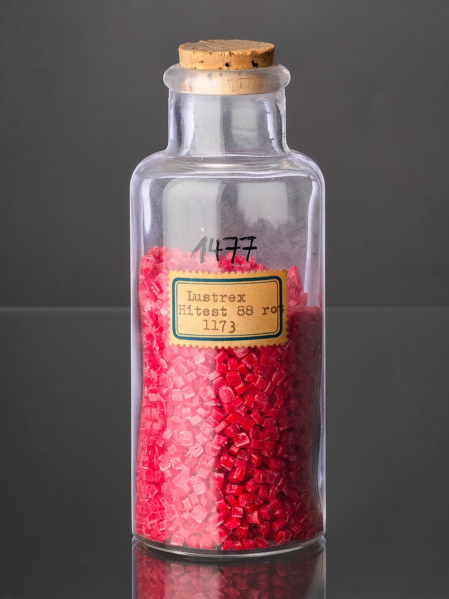 | Material | | Type | Polymer | | Origin | Synthetic Organic | | Color | Red | | Gloss | | | Brightness | Medium | | Transparency | Opaque | | Amount | A lot of | | Aggregate State | Granulate | | Sensitivity to light | No | | Toxicity | | | Flammability | | | Safety & Hazards | |