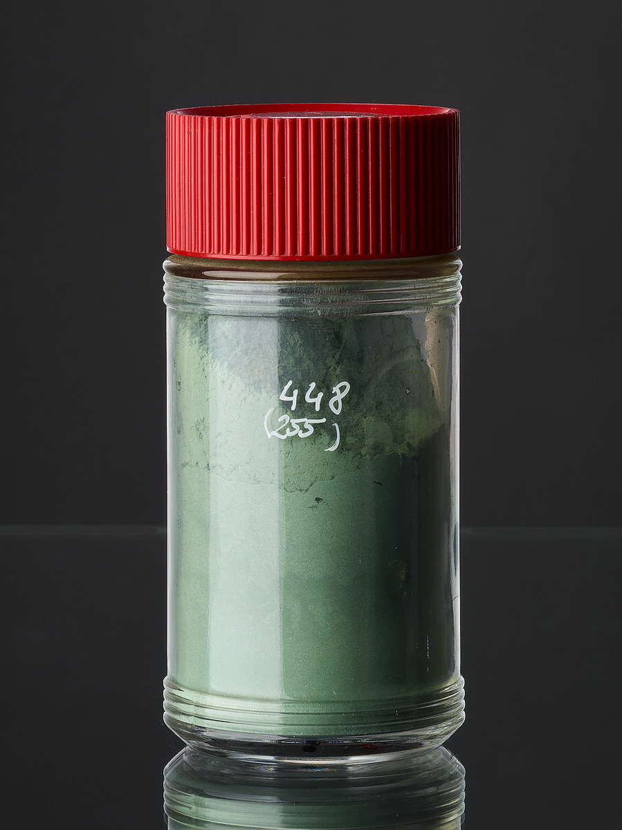 | Material | | Type | Pigment | | Origin | Inorganic | | Color | Green | | Gloss | None | | Brightness | Bright | | Transparency | Opaque | | Amount | Little | | Aggregate State | Powder | | Sensitivity to light | No | | Toxicity | | | Flammability | | | Safety & Hazards | |