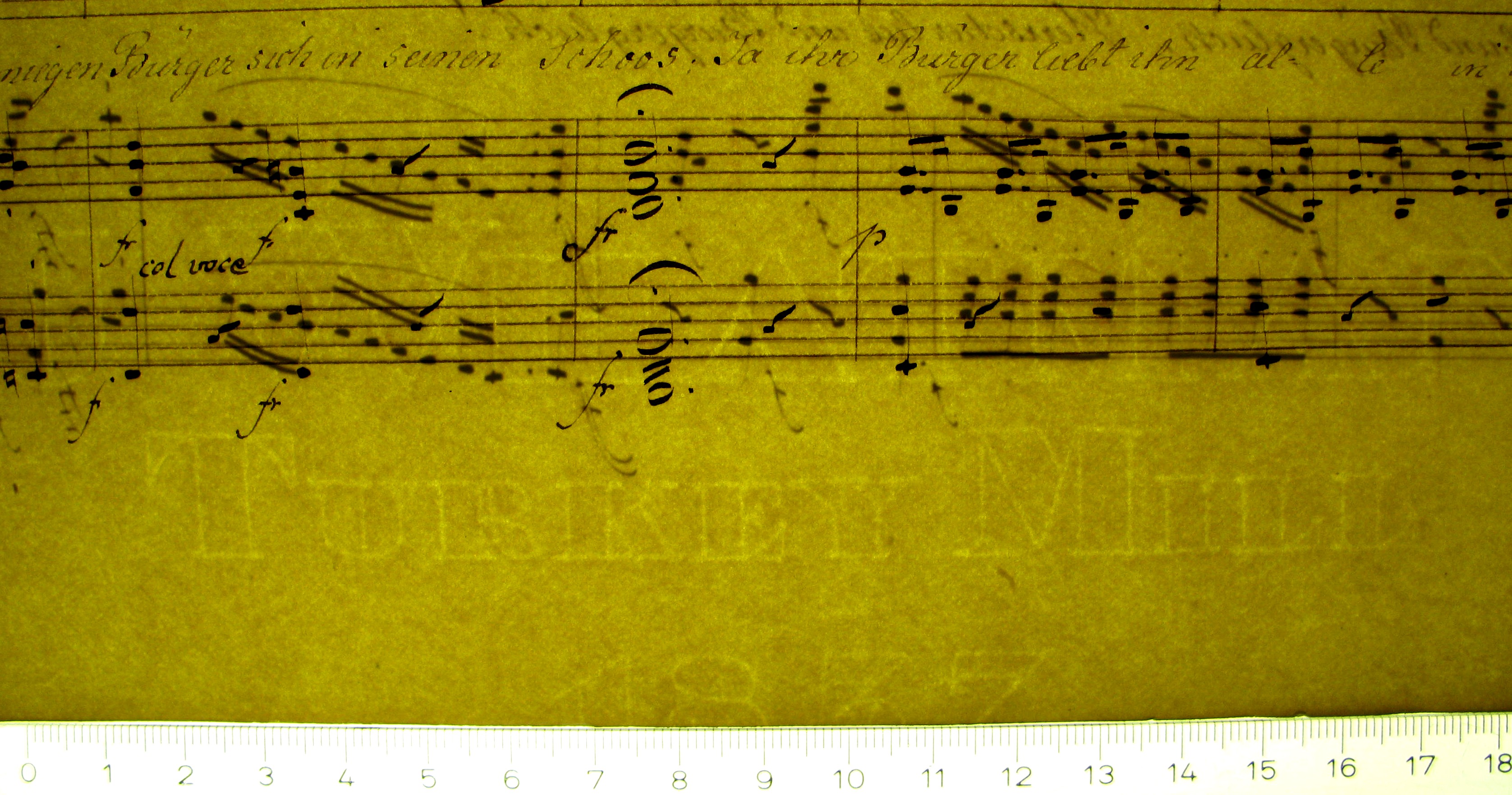 RISM-OPAC Nummer: D-Cl 15 Documented datings: Place od use: Depository: Landesbibliothek, Coburg Watermark: J WHATMAN / TURKEY MILL / 1837 Paper maker: J Whatman, Turkey mill, Kent, England Activity time: 1760-1850 Paper mill: J Whatman, Turkey mill, Kent, England Paper mill location: J Whatman, Turkey mill, Kent, England Literature: Shelfmarks: Ms Mus 887 Remarks: | ![]() ![]() | ||