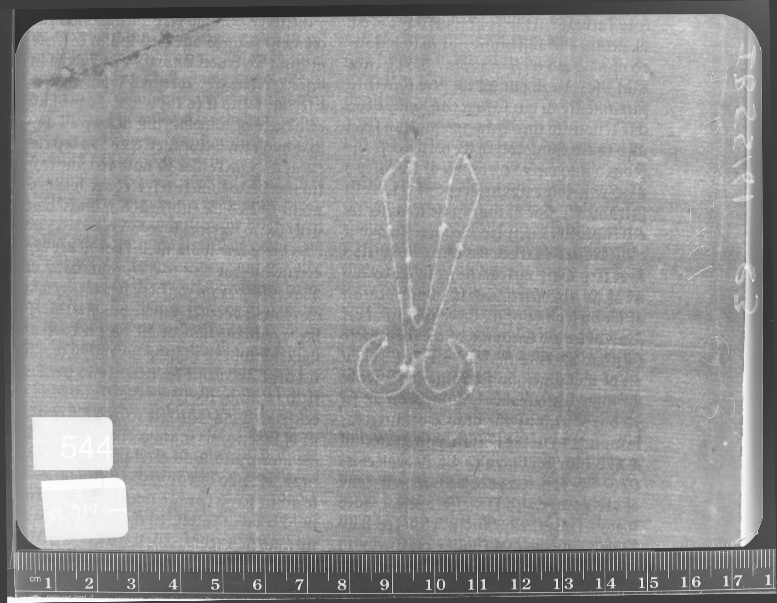 | Reference number: 544 Watermark description: scissors, III Bernstein description: realities - tools - pair of scissors - III Mainclass IPH: N Maingroup description: scissors Position: right Identical watermarks: Reproduction: beta-radiograph Depository: British Library, London, Great Britain | ![]() ![]() |