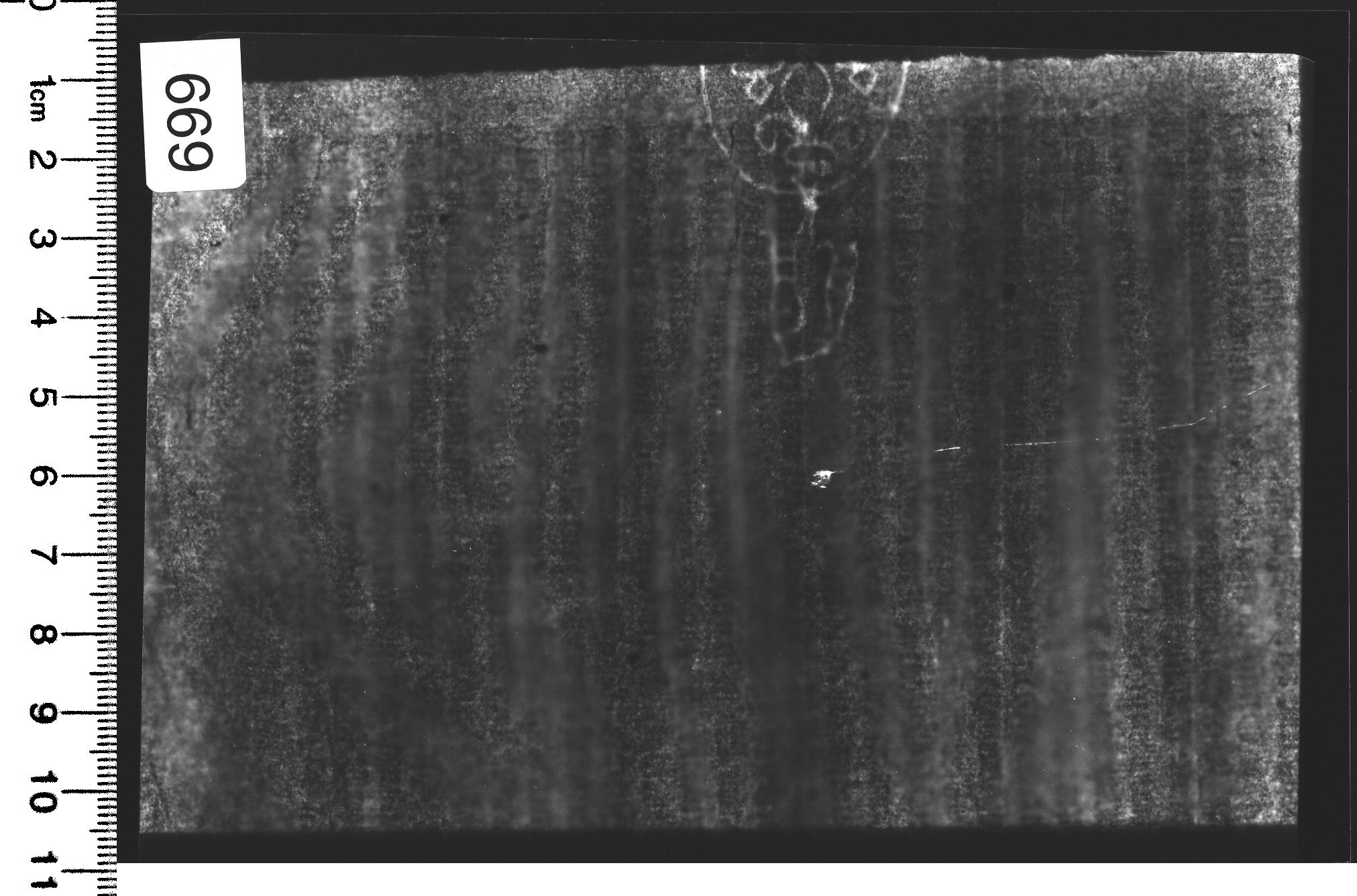 | Reference number: 669 Watermark description: shield, three lilies, on t to left, III (France) Bernstein description: coat of arms - national coats of arms - shield - three lilies - on t to left - III (France) Mainclass IPH: T Maingroup description: shield Position: left Identical watermarks: Reproduction: beta-radiograph Depository: Bodleian Library, Oxford, Great Britain | ![]() ![]() |