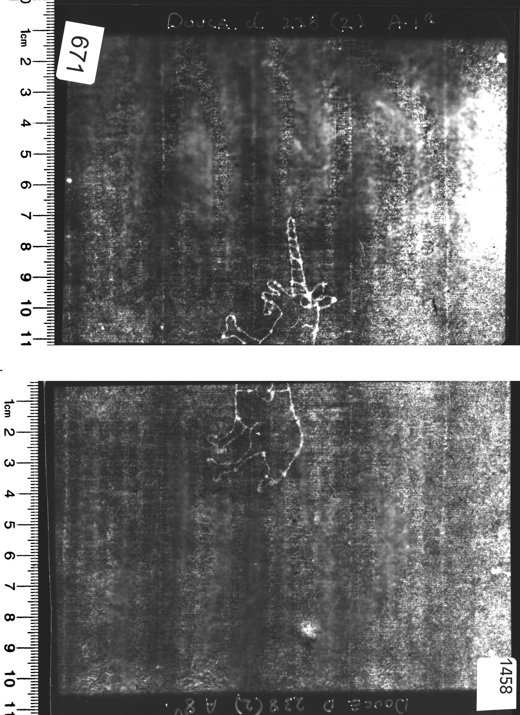 | Reference number: 671 Watermark description: unicorn, vertical, single line band, heart, to left Bernstein description: fabulous creature - unicorn - detached - entire figure - vertical - single line band - heart - to left Mainclass IPH: F Maingroup description: unicorn Position: right Identical watermarks: Reproduction: beta-radiograph Depository: Bodleian Library, Oxford, Great Britain | ![]() ![]() |