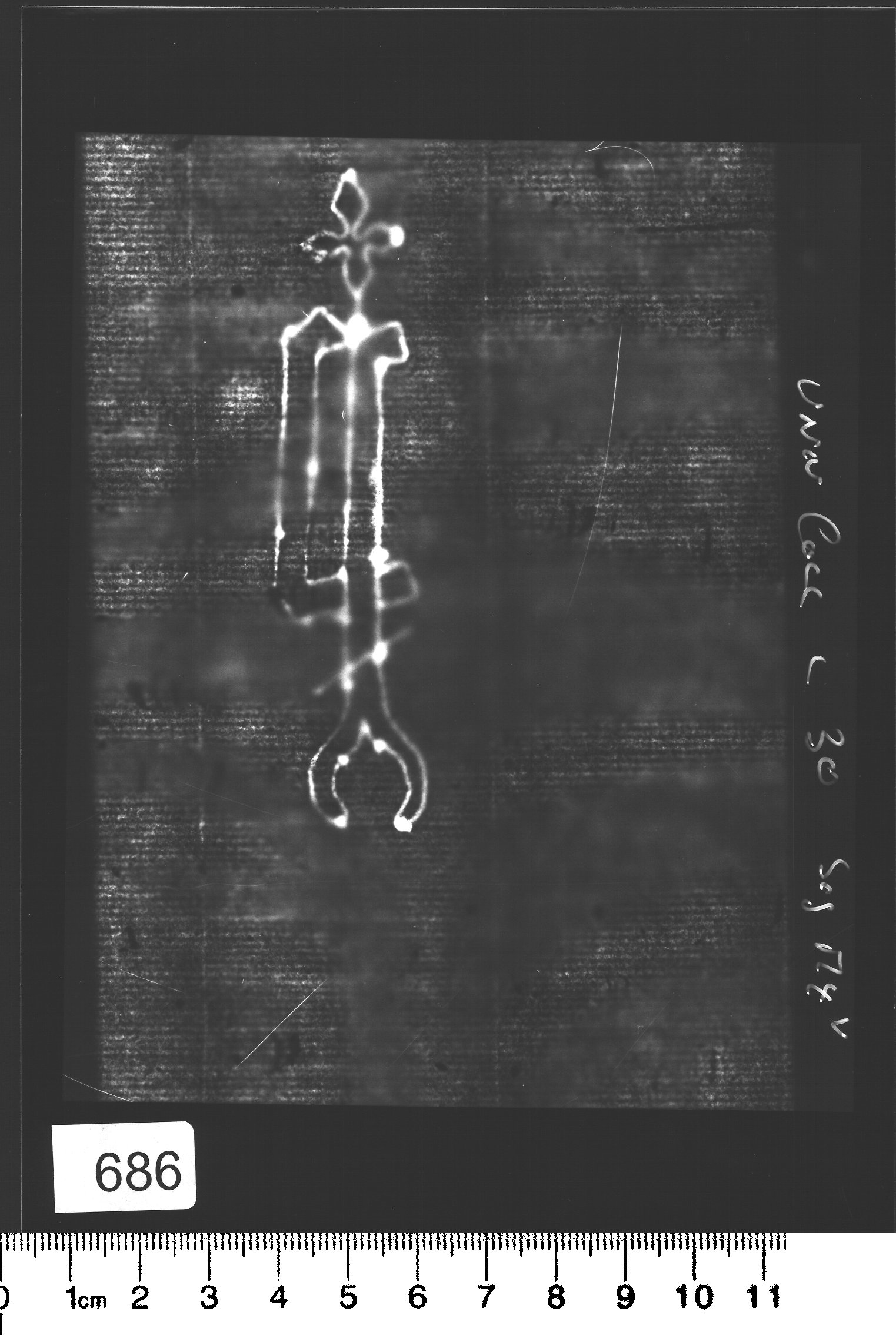 | Reference number: 686 Watermark description: letter p, quatrefoil, dash, to left Bernstein description: letters/digits - one letter - letter p - quatrefoil - dash - to left Mainclass IPH: W Maingroup description: letter p Position: right Identical watermarks: BMC XI 427: Rood Royal 1, 2, 3, 4, 5, 6, 7, 8, 9, 10, 11, 12, 13, 14, 15, 16, 17, 18, 19 Reproduction: beta-radiograph Depository: Bodleian Library (University College), Oxford, Great Britain | ![]() ![]() |