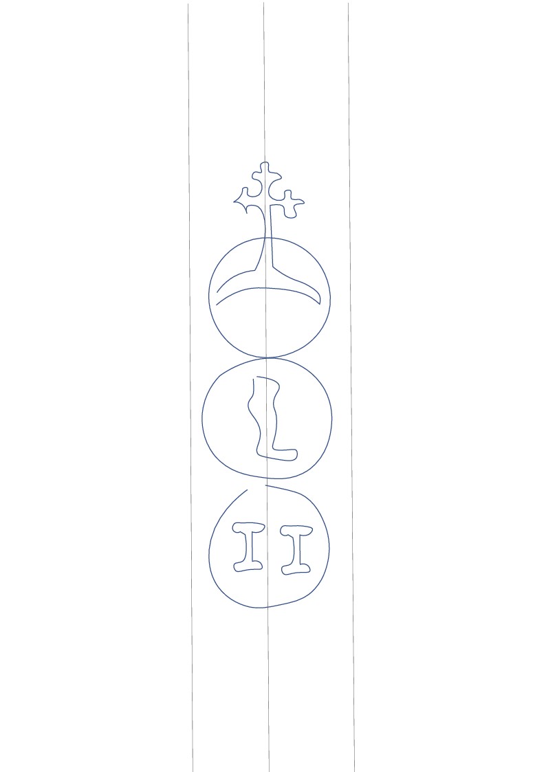 Categoria: Figuras geométricas-Tres círculos-media luna-surmontado por una cruz trebolada-con bota Altura Filigrana: 68 Anchura Filigrana: 23 Corondeles Portadores: 1