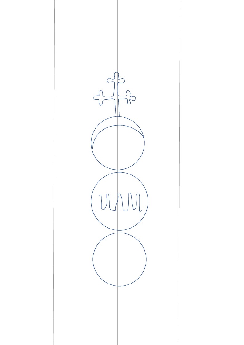 Categoria: Figuras geomĂ©tricas-Tres cĂrculos-media luna-surmontado por una cruz trebolada-con letras Altura Filigrana: 81 Anchura Filigrana: 23 Corondeles Portadores: 1