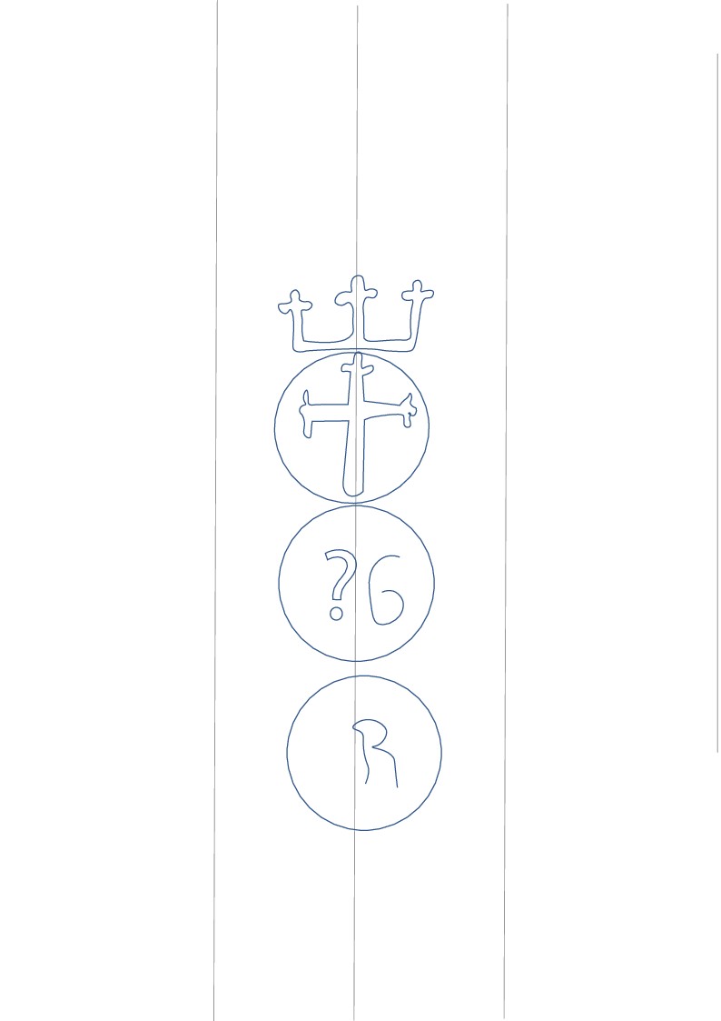 Categoria: Figuras geomĂ©tricas-Tres cĂrculos-cruz trebolada-surmontado por corona lombarda-con letras y elemento no identificado Altura Filigrana: 72 Anchura Filigrana: 21 Corondeles Portadores: 1